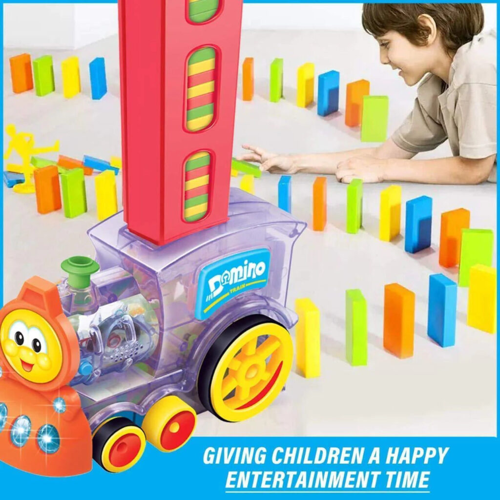 Kidozon 40 Pcs Domino Train Toy Set, Domino Rally Train Model with Lights and Sounds Construction and Stacking Toys – Kidozon